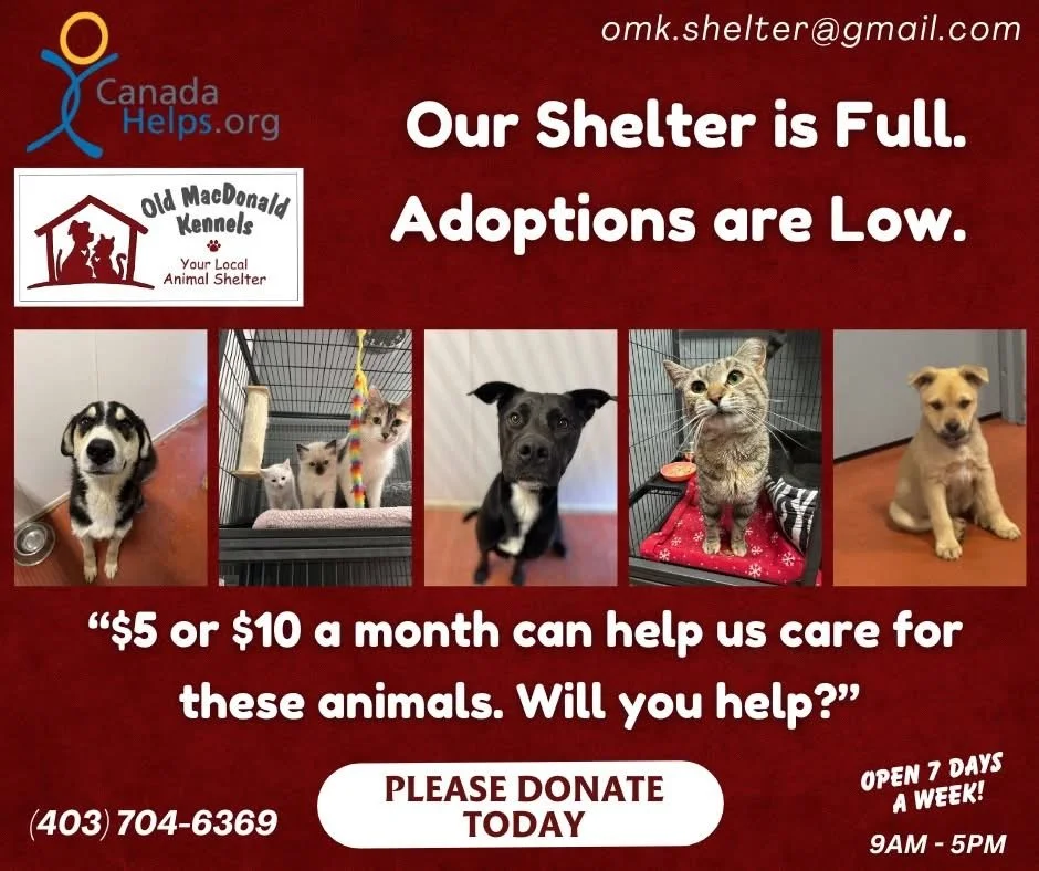 If you are interested in an animal in our care it’s best to give us a call at 403-704-6369. You will be able to talk to our friendly staff who are happy to tell you all we know of the animal in care. If the animal is ready for visitors then you are welcome to stop by. It’s best to make an appointment so we have all the time to help you. If you are looking to add another dog to your family then please bring your other dogs along for a meet and greet.
