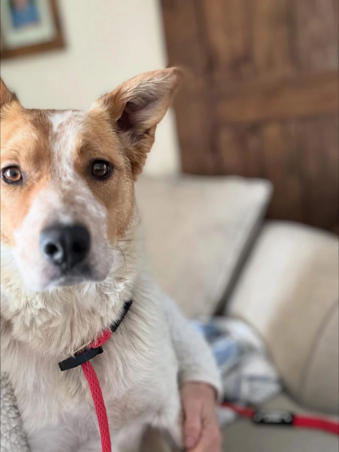 This lovely girl is a Heeler/Collie–type mix with a calm, affectionate nature. She’s wonderful on leash and enjoys easygoing walks where she can explore and stay close to her person. Chili’s gentle personality makes her easy to love, she’s friendly, kind, and always appreciative of pets and attention.