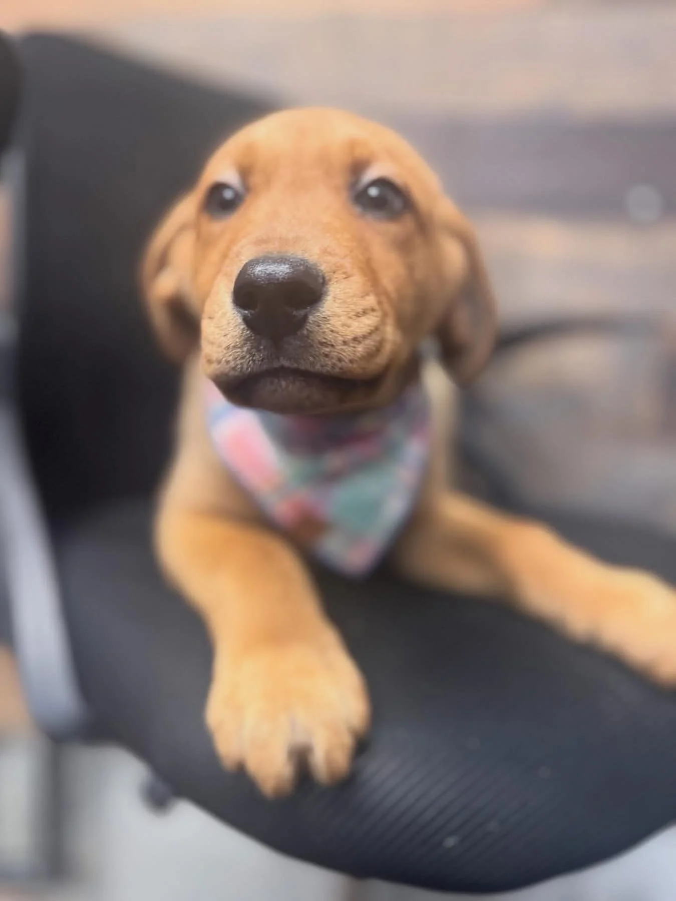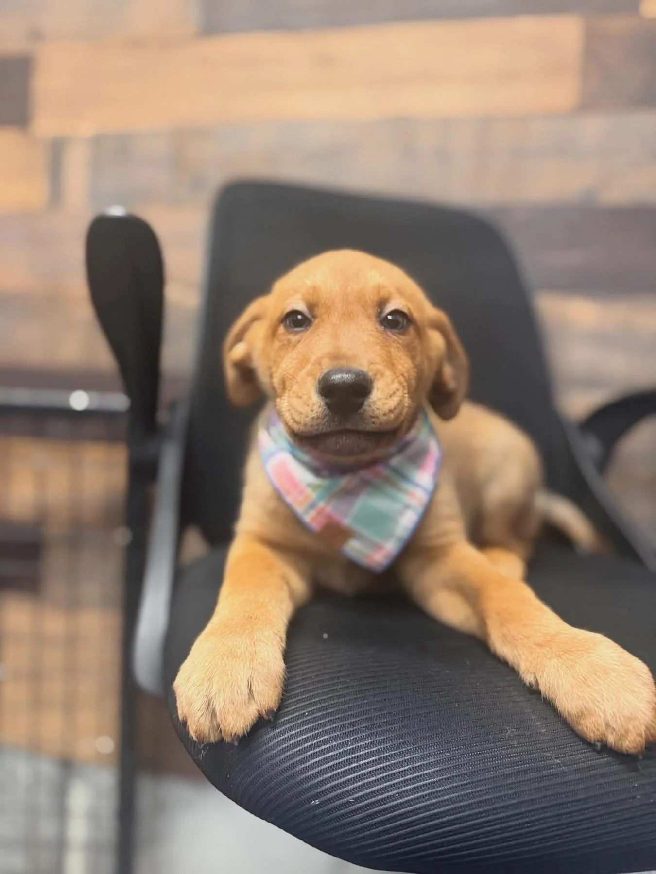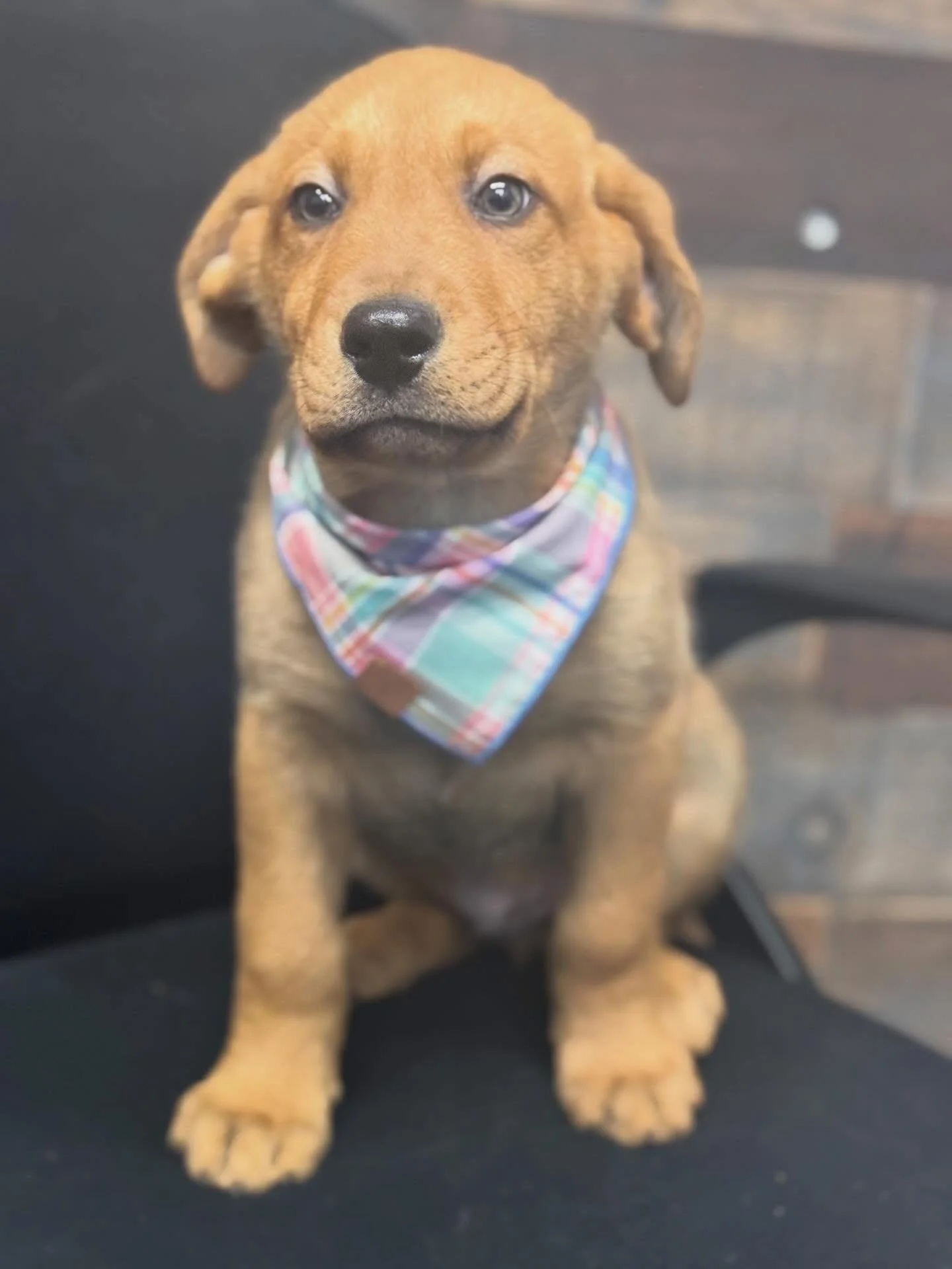 Oakley, their mom, is a very nice Labrador mix who already has an adoption pending!