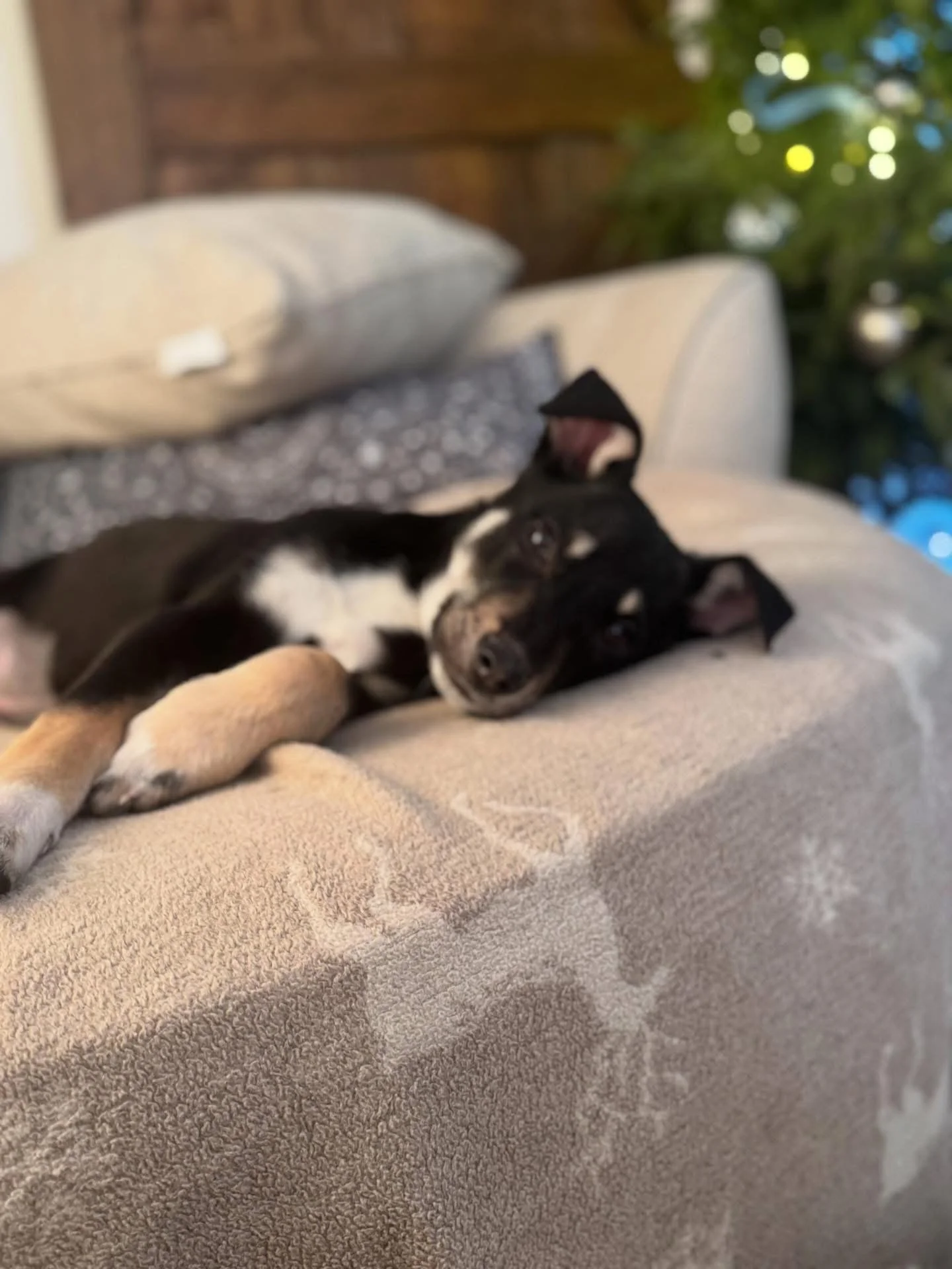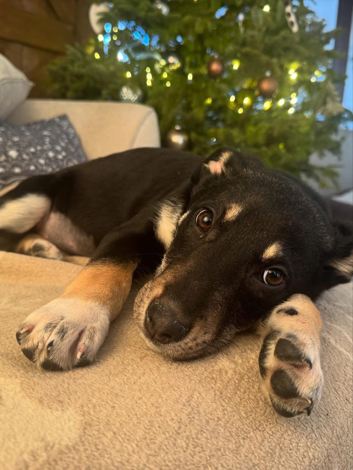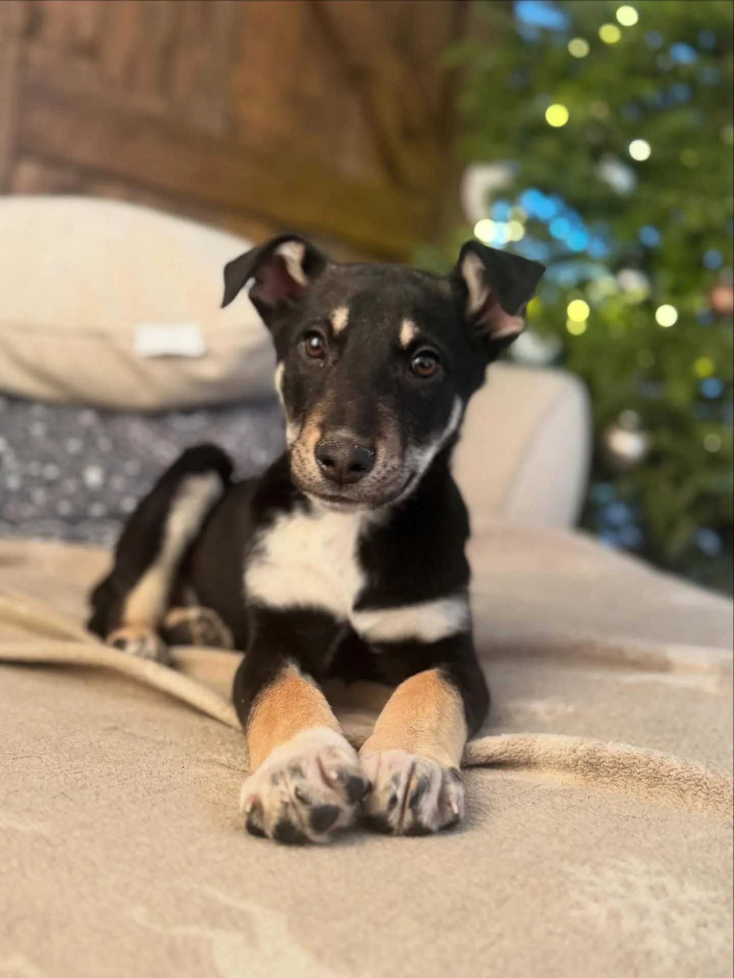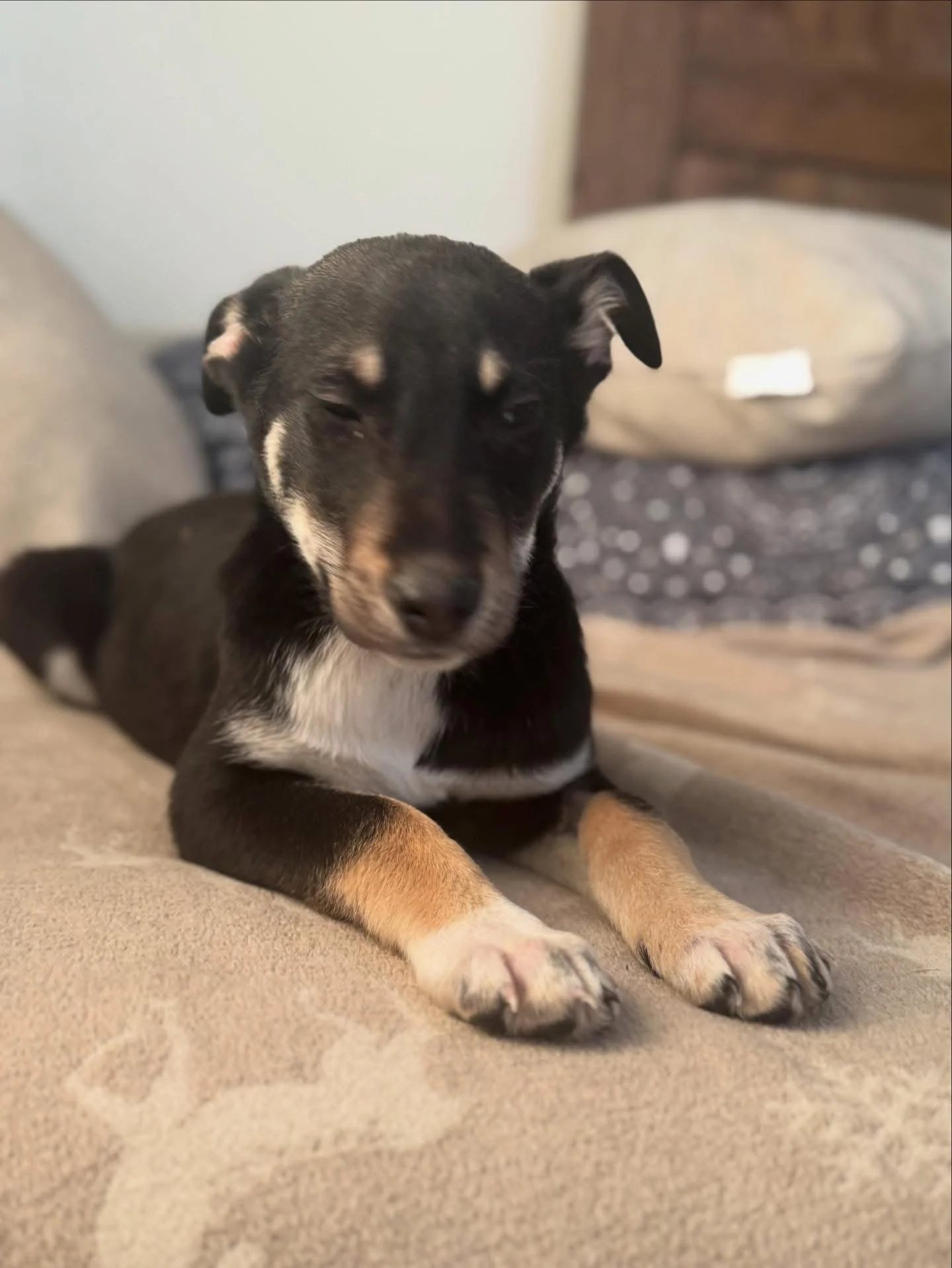 Hey there! Do you recall the adorable pups who joined OMK on December 7th? They were trying to survive in the freezing cold. Dolly is one of them, and she’s absolutely loved by all of us. This clever little pup is smart, affectionate, and loves nothing more than cuddling up♥️Mom was spayed and returned, but we have no info on their dad. They remind me a bit of a rough collie. Feel free to drop by anytime and say hello to Dolly!