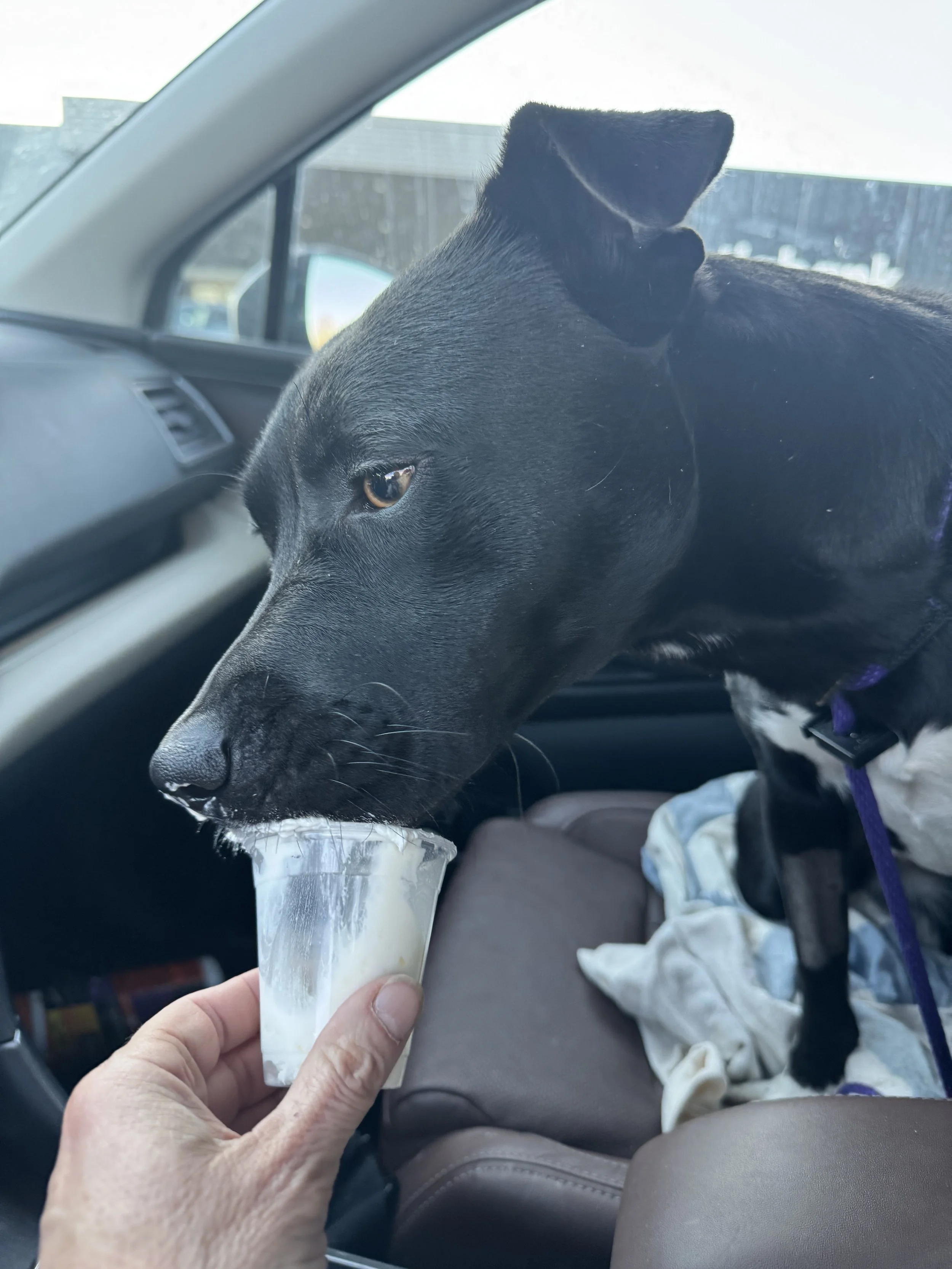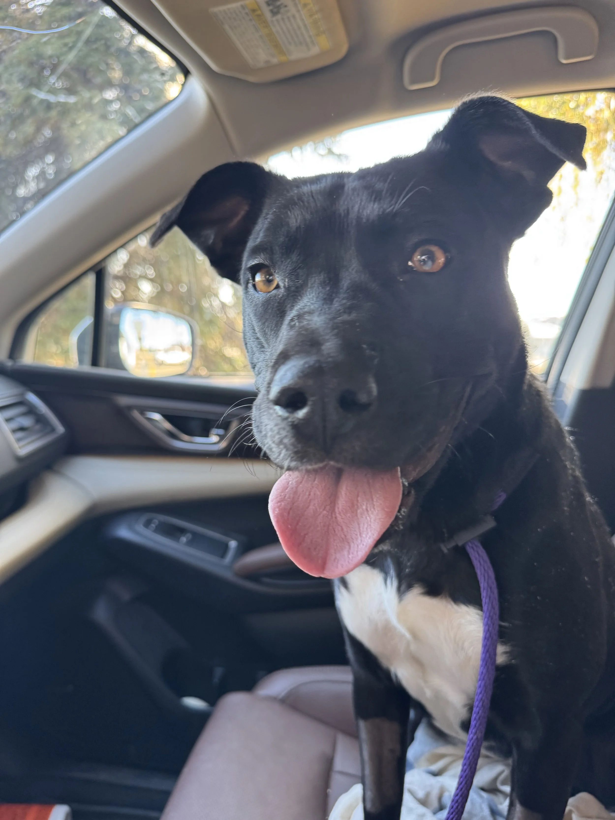 She’s so sweet and fun to be around. She was very friendly towards all the people and dogs she met today, and she’s also great with cats.