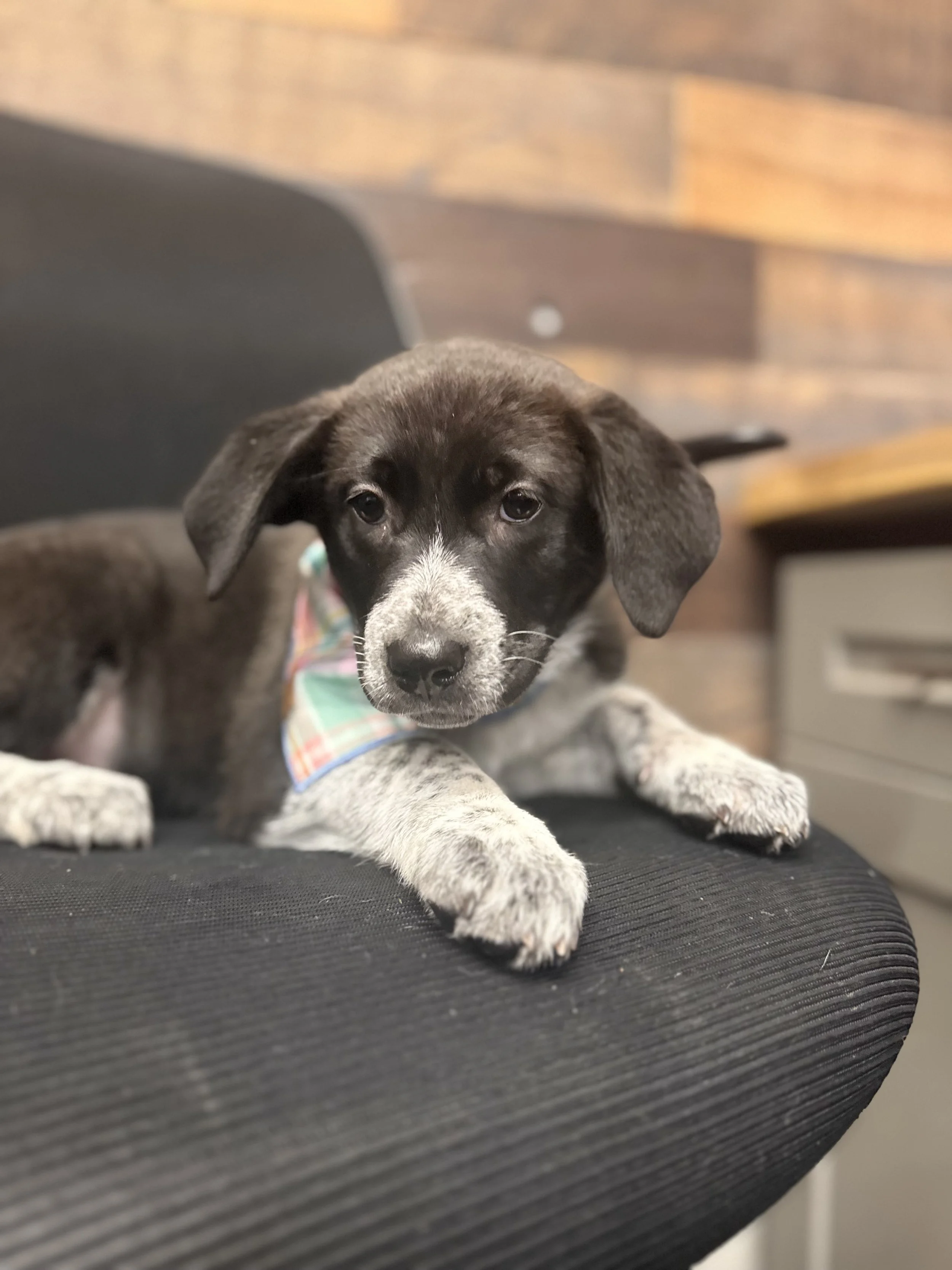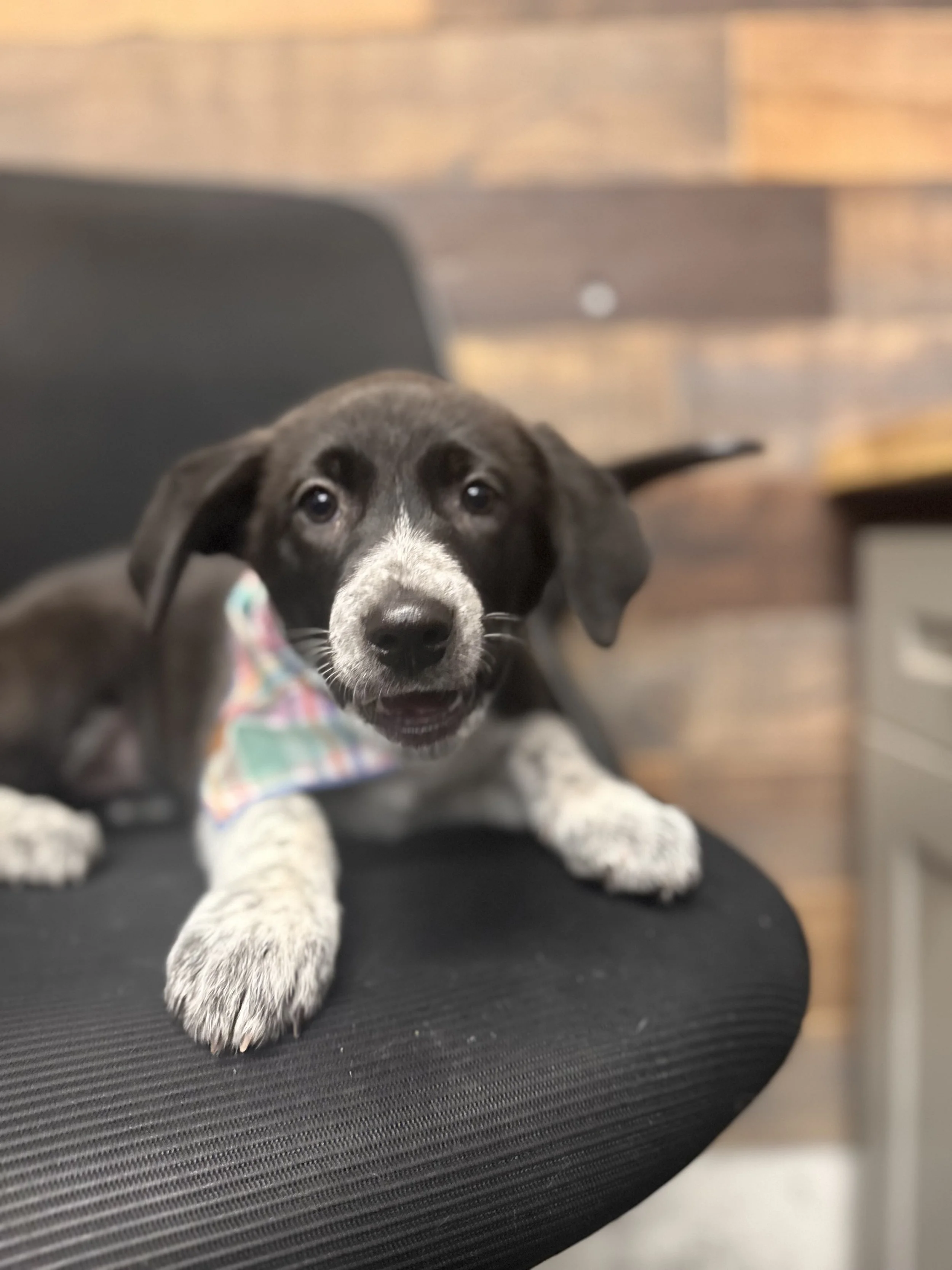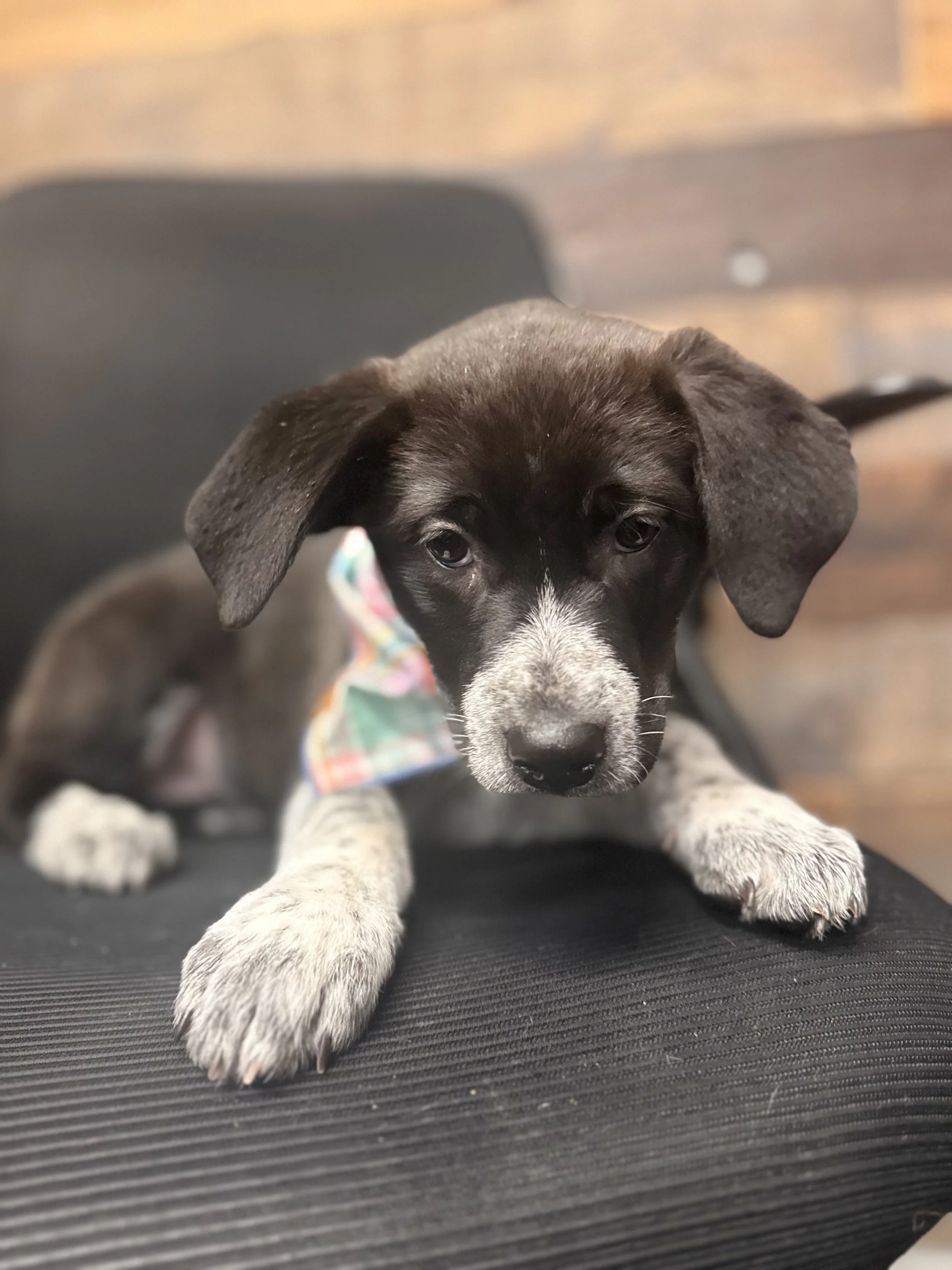 Oakley, their mom, is a very nice Labrador mix who already has an adoption pending!