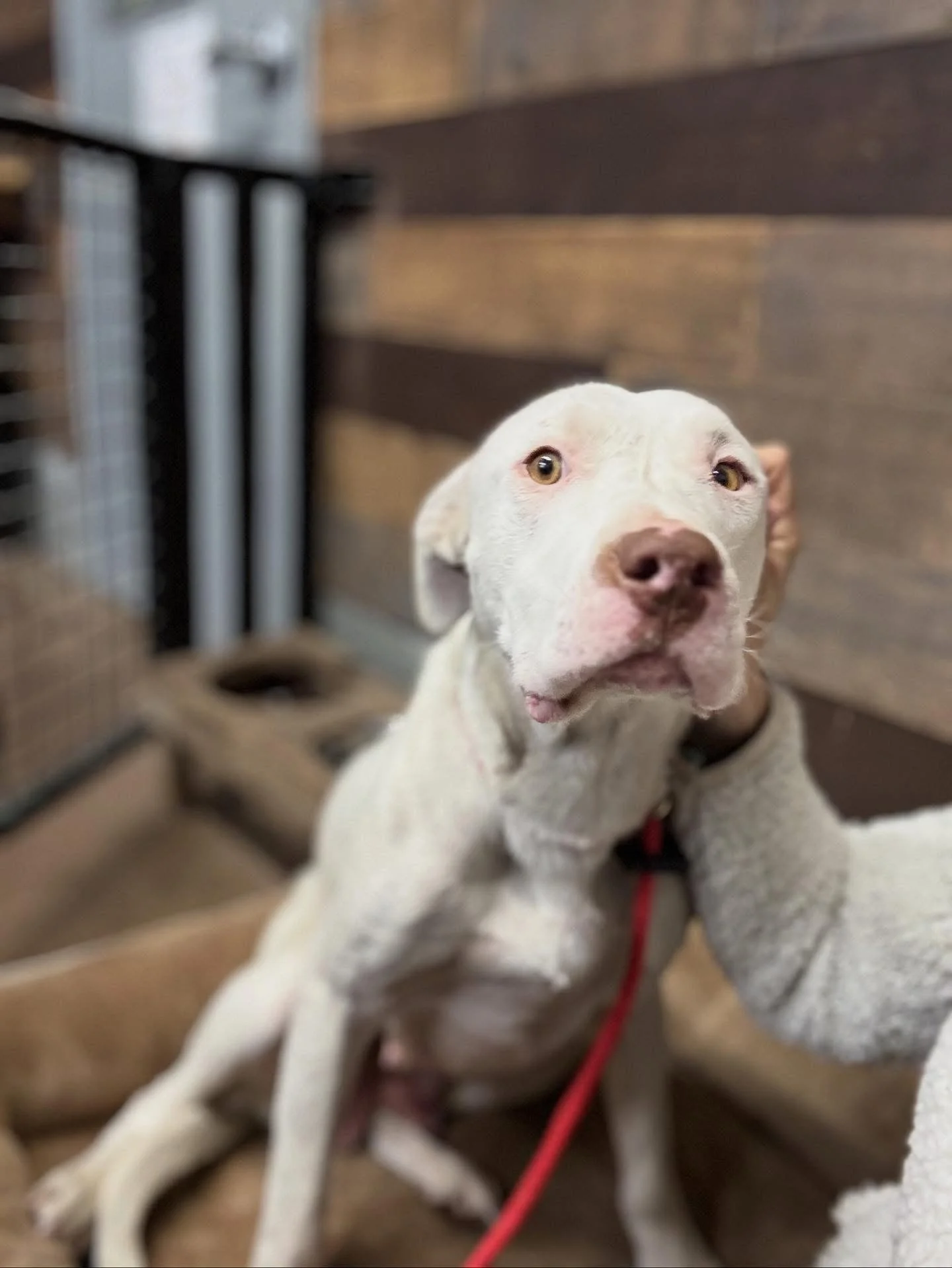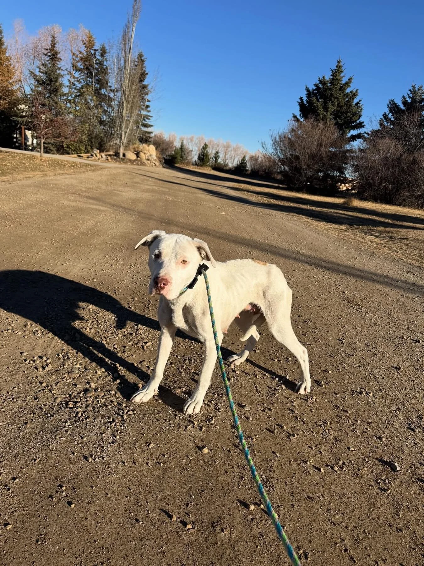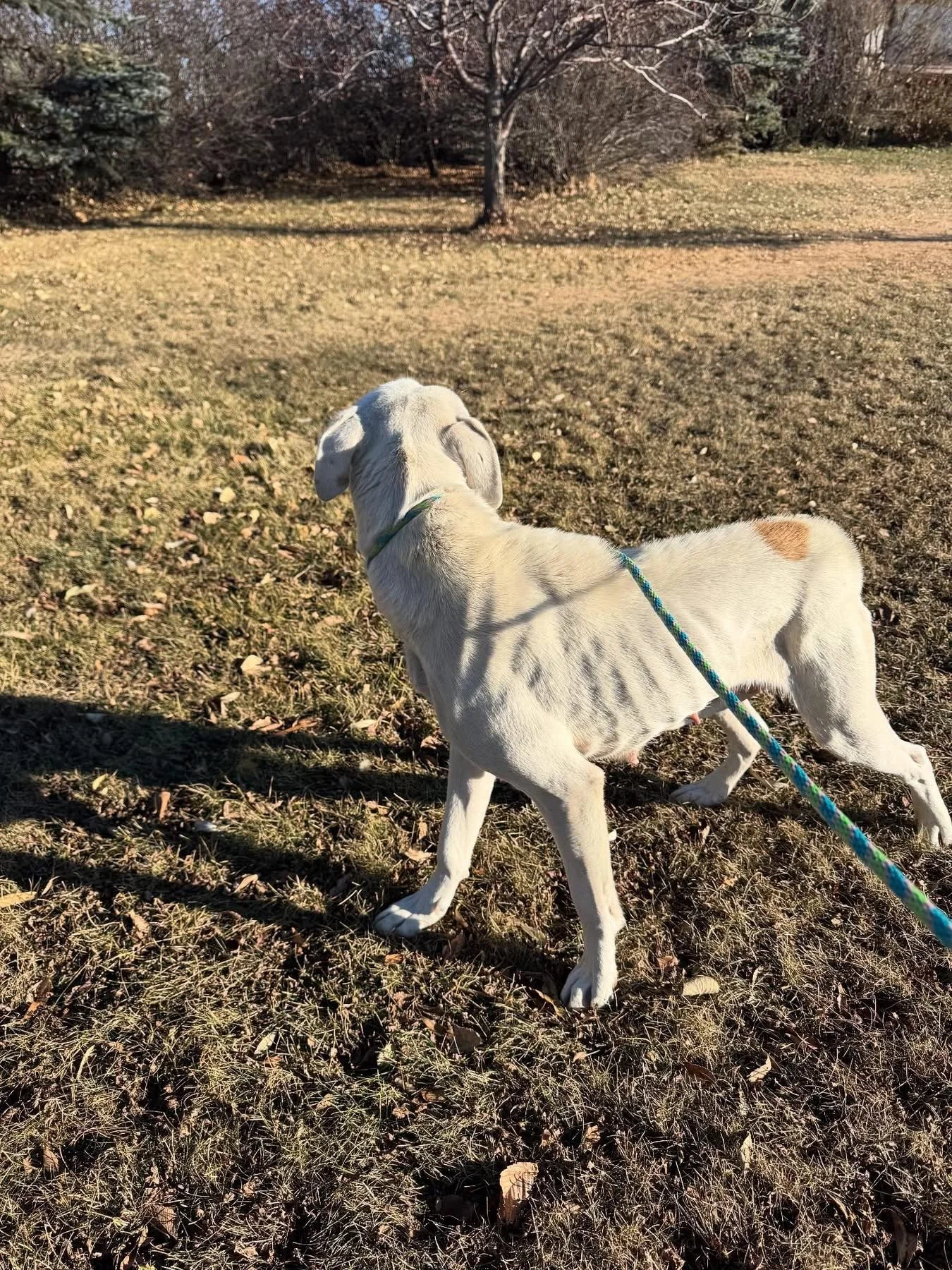 An update on the emaciated pitbull that came into our care last week. She’s slowly starting to gain weight. She’s very affectionate around people but scared and skittish during walks. She hasn’t seen many things yet. I wonder what kind of life she had before she came into our care. We certainly enjoy her kind and affectionate nature.