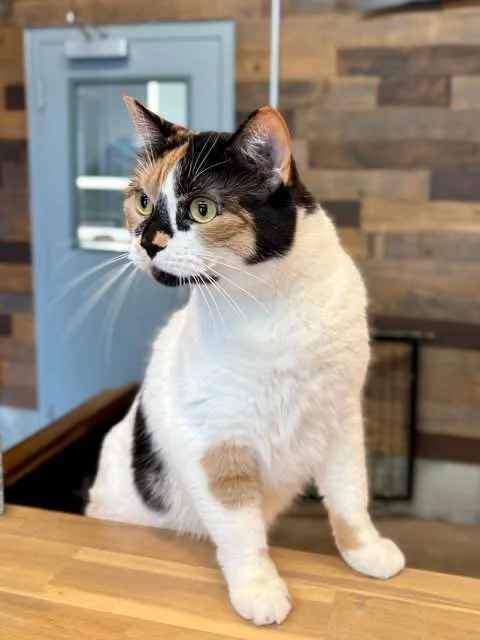 This 4 year old came into our care March 28 after she was surrendered to us due to owners circumstances. She lived in a house with other animals but wasn’t treated well by them. She would do best in a house with animals that would respect her space. Phoenix is a love bug who loves all the attention and pets. She can be a little nervous is new environments but once she’s comfortable she is a great cat. If you are interested in this beauty please give us a call or text.